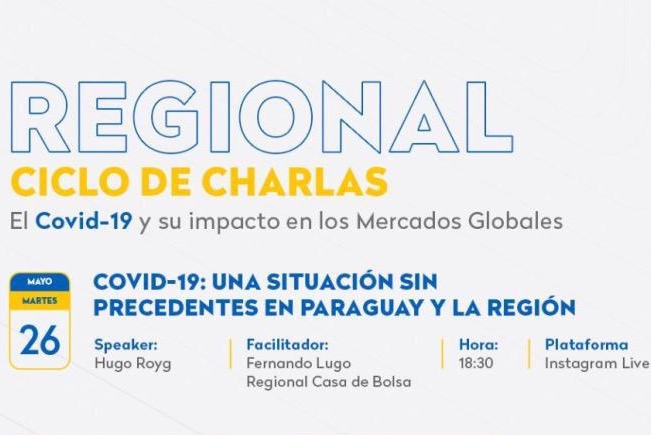El martes 26 de mayo a las 18:30 hs., Regional Casa de Bolsa llevó a cabo la segunda edición del Ciclo de Charlas, titulada “COVID-19: Una Situación Sin Precedentes en Paraguay y la Región”. La misma se realizó a través de un Instagram Live donde se conectaron más de 70 participantes.