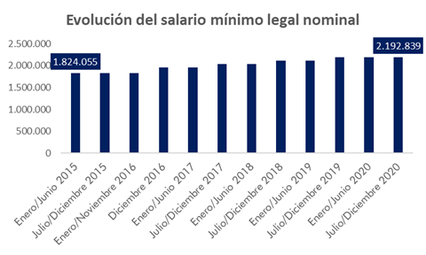 El Poder Ejecutivo anunció, mediante el decreto N° 3817/20, mantener los sueldos y jornales del sector privado a partir del 1 de julio del corriente año, con relación al Salario Mínimo legal vigente (SM) para actividades expresamente previstas y las diversas no especificadas, en el monto total de Gs. 2.192.839, así como el total correspondiente a un jornal mínimo en la suma de Gs. 84.340.