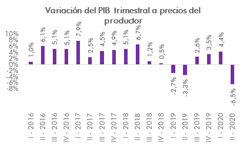 PIB presenta caída interanual de 6,5% en el segundo trimestre del año