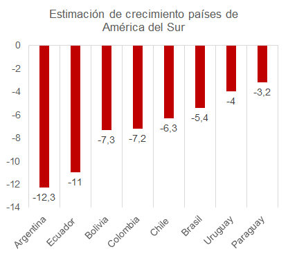En esta nueva estimación, Paraguay decrecería cerca del 3,2% en 2020 y sería el país de menor decrecimiento relativo en América del Sur.