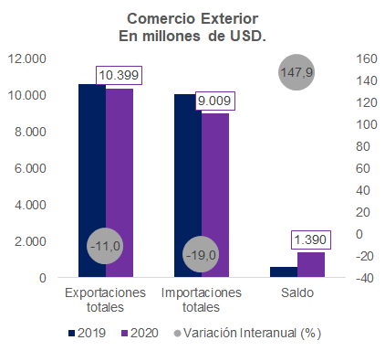 Una demanda debilitada por los efectos de la pandemia en la actividad económica condujo a que al mes de noviembre del corriente año, el comercio exterior paraguayo tuviera un valor de USD. 19.408,3 millones, representando una reducción de 14,9% con respecto al acumulado a noviembre del año anterior.