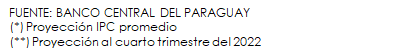 Según el Informe de Política Monetaria (IPoM) del Banco Central del Paraguay (BCP), la inflación en el último trimestre del corriente año se ubicó por encima de lo estimado, con lo que se espera que la misma cierre diciembre en 2,1%, una décima por encima del límite inferior del rango meta. Para el 2021, la proyección para la inflación total así como para la subyacente se ubica en 3,9%.