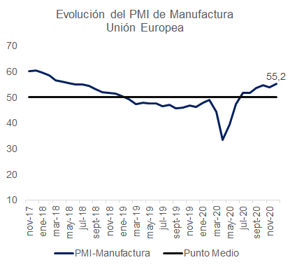 Sector manufacturero europeo muestra expansión positiva al cierre del 2020