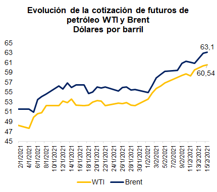 Desde los inicios del mes de febrero de 2021, la cotización del petróleo mostró una tendencia alcista.