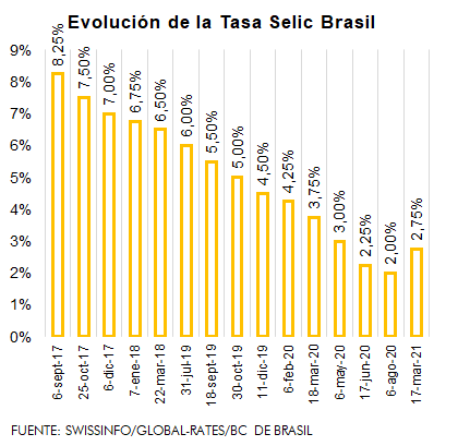 Con el alza anunciada, el Banco Central (BC) intenta contener la fuerte apreciación del dólar y la presión inflacionaria motivada por una disparada de precios de productos agrícolas, a la fuerte desvalorización del real frente al dólar y al empeoramiento del panorama fiscal, agravado por débil gestión de la pandemia por parte del gobierno de Jair Bolsonaro.