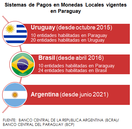 Según un comunicado del Banco Central de la República Argentina (BCRA) a partir del martes 22 de junio entraría en funcionamiento el Convenio del Sistema de Pagos en Moneda Local firmado con su par de Paraguay, que permitirá la canalización de los pagos correspondientes a operaciones entre personas físicas o jurídicas de los respectivos países.