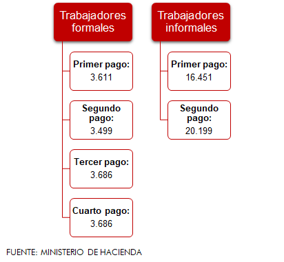 La Ley mencionada prevé hasta seis pagos para los 4.000 trabajadores formales y hasta dos para los 21.000 informales, cuyos desembolsos ya alcanzaron USD 2,1 millones y USD 2,8 millones respectivamente. En el transcurso de la semana pasada se realizaron la tercera y cuarta acreditaciones a los formales, que ascienden a Gs. 2.190.000 por persona. Casi el 60% de los trabajadores formales es de Encarnación.