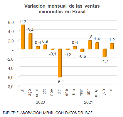 Según el Instituto Brasileño de Geografía y Estadística (IBGE), las ventas del sector minorista considerado uno de los motores de la economía brasileña registraron un aumento acumulado del 6,6%. Este fue el cuarto crecimiento consecutivo registrado por el sector. Con relación al mes anterior las ventas minoristas en Brasil registraron un incremento de 1,2%.