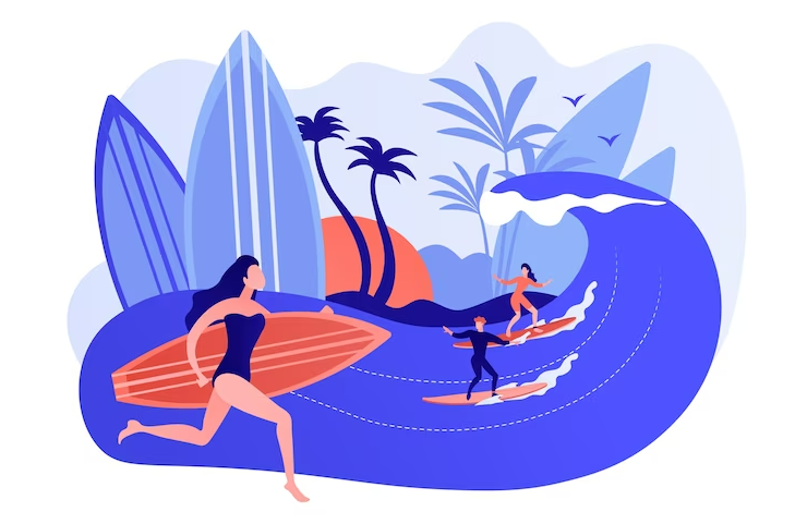 Con el surf la persona logra ponerse de pie encima de una ola con la ayuda de una tabla.