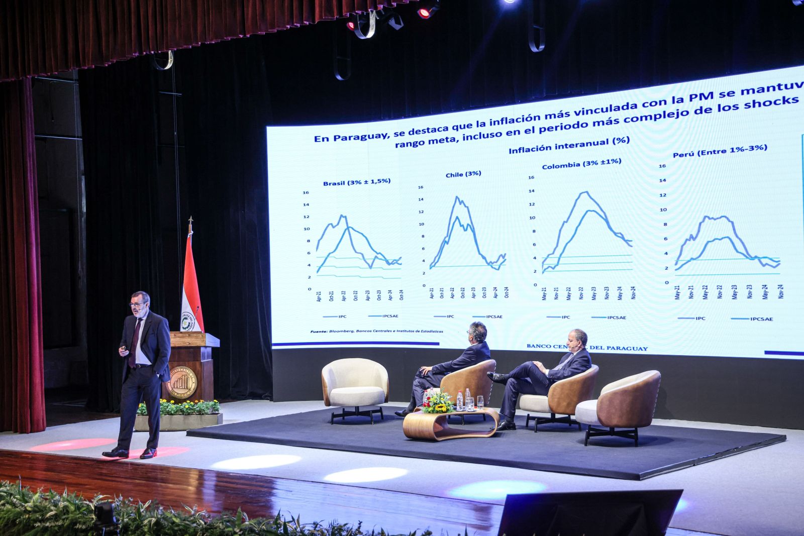 En la conferencia magistral “Paraguay: Evaluación 2024 Perspectivas 2025. Grado de inversión: El inicio de una nueva carrera”, las principales autoridades del Ministerio de Economía y Finanzas (MEF) y del Banco Central del Paraguay (BCP) realizaron un análisis del panorama económico de cara al próximo año.