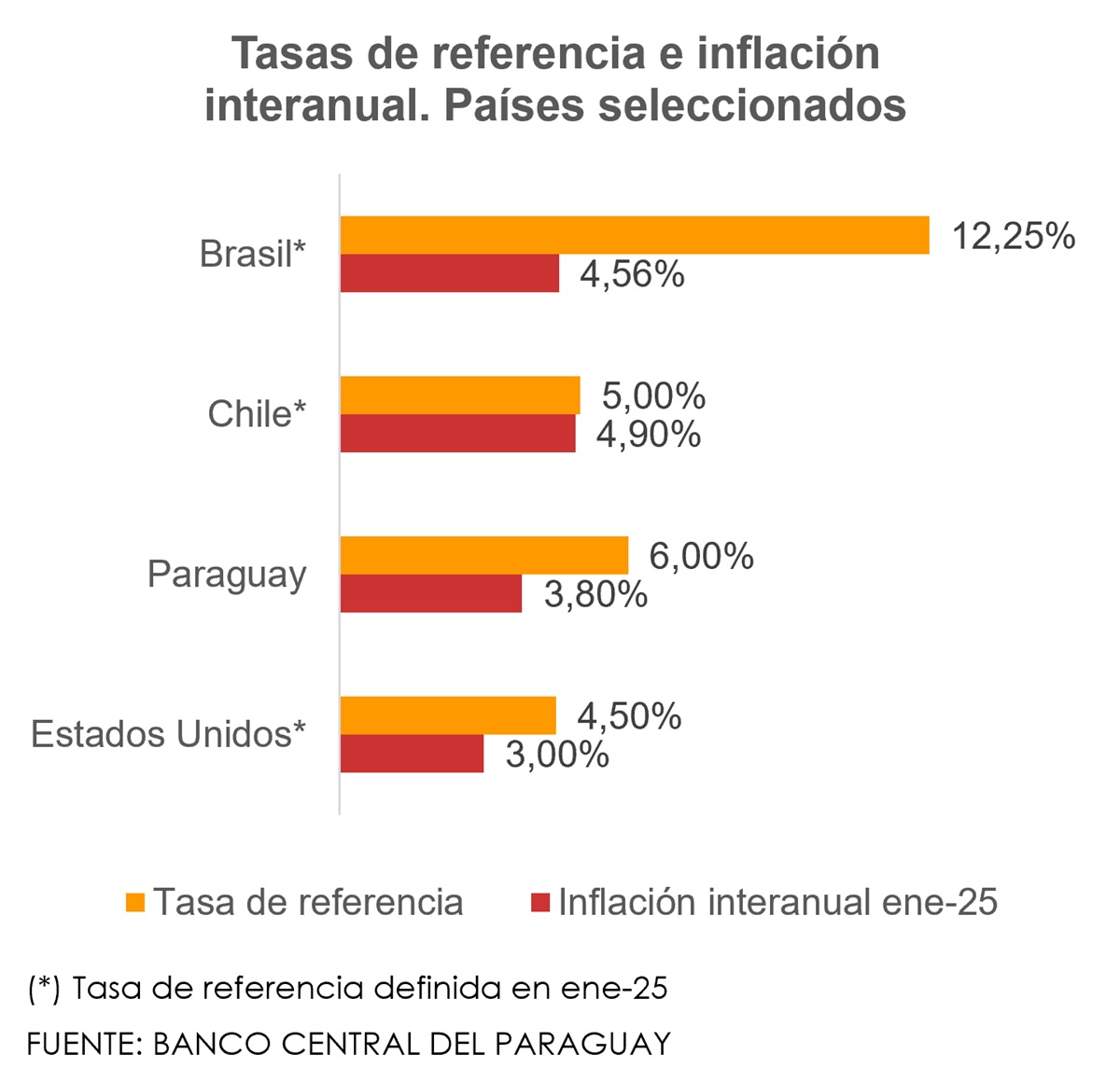 Para la toma de dicha decisión, se evaluaron diversos factores. En el plano internacional, se destacó que la inflación interanual en Estados Unidos fue de 3,0% en enero y que la Reserva Federal (FED) mantuvo las tasas de interés en 4,25-4,50%. Los precios del petróleo revirtieron su aumento, mientras que los commodities agrícolas mostraron variaciones mixtas.