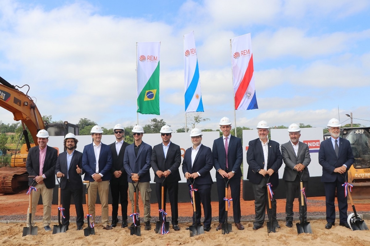 Representantes de la firma REM Industries y autoridades locales participaron del acto de palada inicial de las obras de construcción de la planta electrointensiva en el Distrito Industrial de la Ciudad de Limpio (predio ubicado frente a la subestación de la ANDE en Limpio).