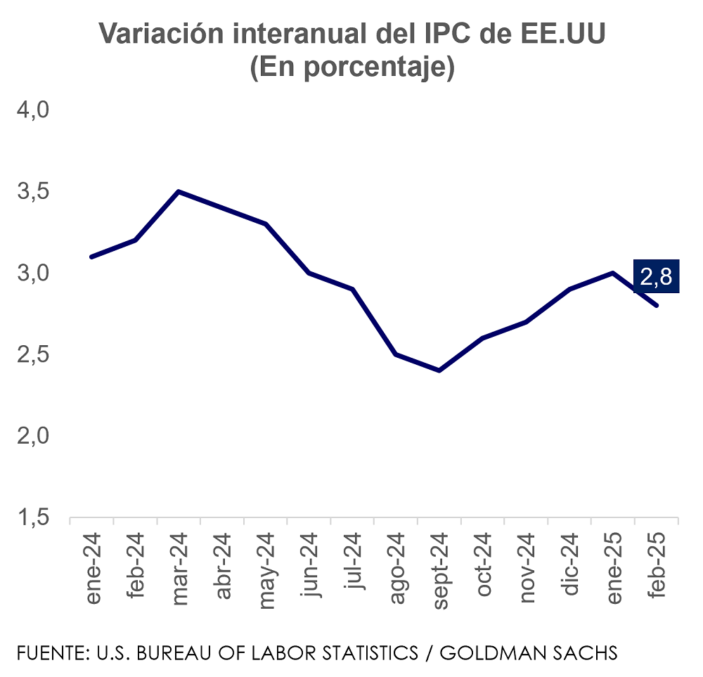 El Índice de Precios al Consumidor (IPC) para todos los Consumidores Urbanos (CPI-U) de Estados Unidos (EE. UU.) aumentó 0,2% en febrero, desacelerándose tras el incremento de 0,5% registrado en enero, mientras que la inflación interanual fue de 2,8%.