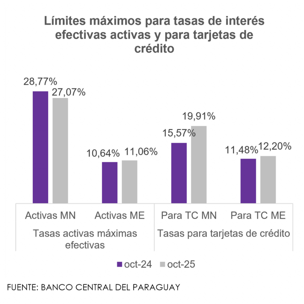 Estas tasas se fijan considerando el promedio de las tasas efectivas de interés anuales percibidas por las entidades financieras por los préstamos al consumo. Por tanto, la reducción en el caso de las de guaraníes podría estar reflejando en parte la competitividad de las entidades.