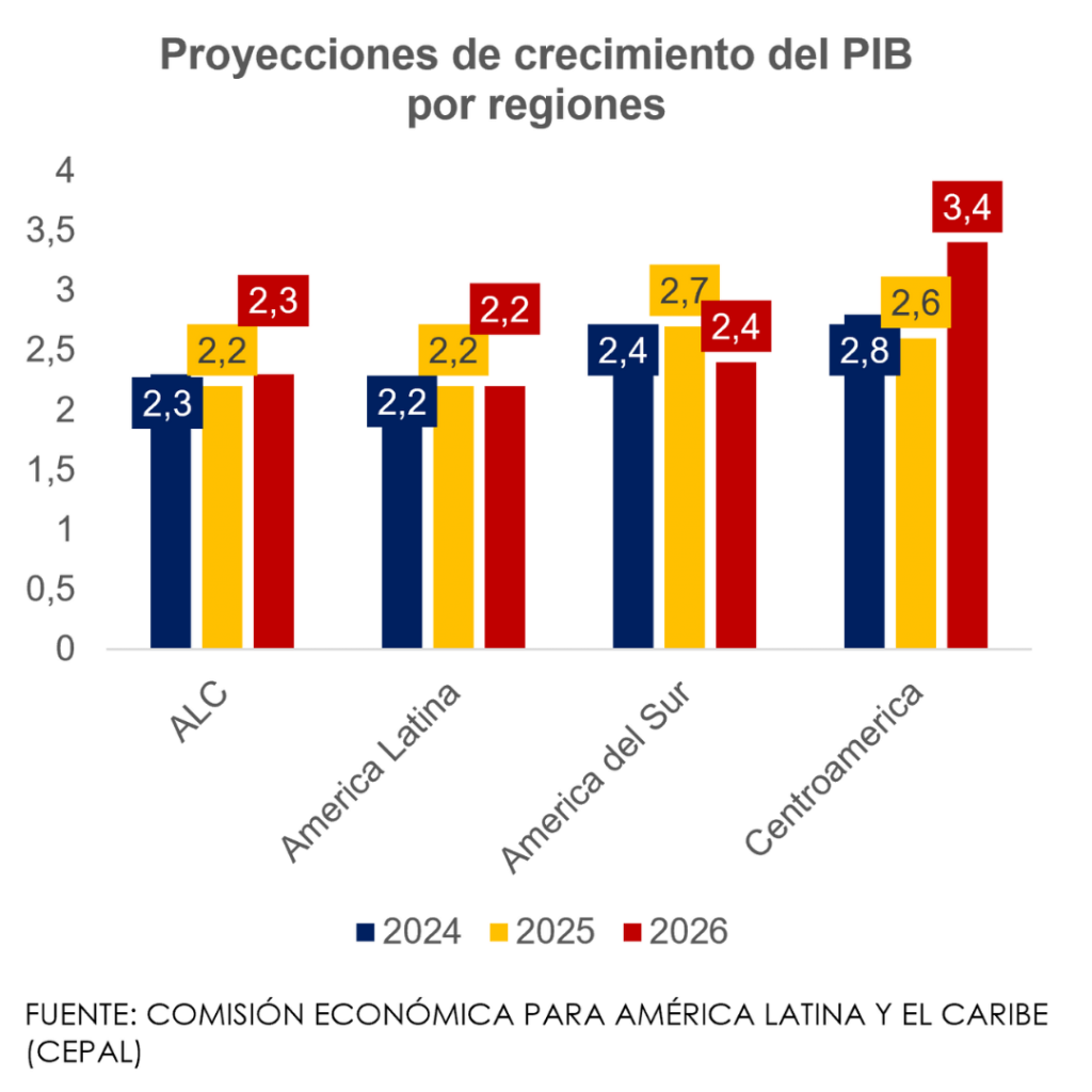 La Comisión Económica para América Latina y el Caribe (Cepal) revisó al alza su previsión de crecimiento regional para 2025, situándola en 2,2%, 0,2 puntos porcentuales más que en abril. Sin embargo, el organismo advierte que la región seguirá atravesando un periodo de bajo crecimiento que se prolongará hasta 2026, cuando el PIB avanzaría 2,3%.