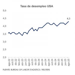 Los últimos datos oficiales publicados sobre el empleo en Estados Unidos (EE.UU.) mostraron un mercado laboral prácticamente estable en agosto, con una creación neta de solo 22.000 puestos de trabajo y una tasa de desempleo que se mantuvo en 4,3%.
