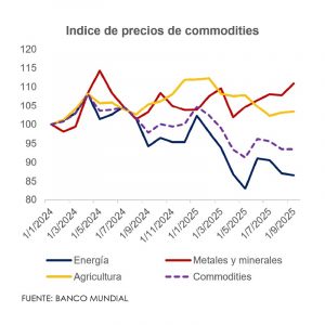 Los mercados globales de commodities enfrentarían en el 2026 su cuarto año consecutivo de descenso de precios, según el informe Commodity Markets Outlook del Banco Mundial. El organismo proyecta caídas de 7% de los precios tanto en 2025 como para el próximo año, en un contexto de crecimiento mundial moderado y un superávit energético en aumento.