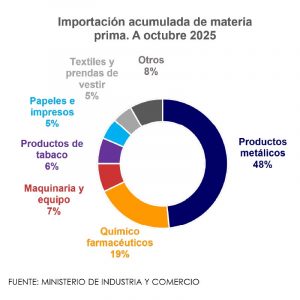 En octubre, se autorizaron 619 solicitudes de importación bajo el régimen de materia prima, por un valor total de USD 42 millones, superior a los USD 25 millones correspondientes a las 506 solicitudes registradas en octubre del año pasado.