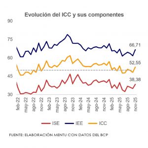 El Índice de Situación Económica (ISE) alcanzó 38,38 puntos, con un aumento mensual de 3,50 puntos y una baja interanual de 2,79 puntos. Por su parte, el Índice de Expectativas Económicas (IEE) se ubicó en 66,71 puntos, con una recuperación mensual de 4,96 puntos y una contracción interanual de 3,38 puntos, lo que sugiere una mejora parcial de las expectativas.