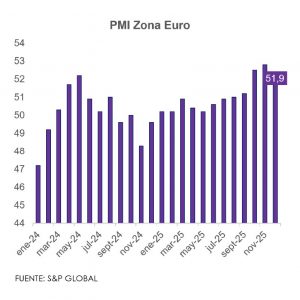PMI de la Zona Euro cierra 2025 en expansión, aunque con menor impulso