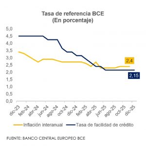 El Consejo de Gobierno del Banco Central Europeo (BCE) decidió mantener sin cambios sus tasas de interés de facilidad de depósito, de las operaciones principales de financiación y de la facilidad marginal de crédito en 2,00%, 2,15% y 2,40%, respectivamente, al tiempo que reafirmó que la inflación convergerá hacia su objetivo del 2% en el mediano plazo.