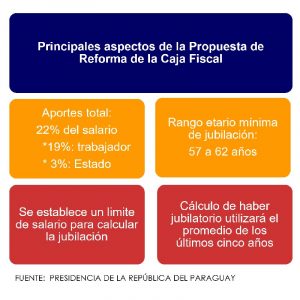 El Poder Ejecutivo presentó al Congreso el proyecto de reforma de la Caja Fiscal, con el objetivo de fortalecer la sostenibilidad financiera del sistema previsional público, cuyos principales regímenes (Magisterio Nacional y Fuerzas Públicas) acumularon en el periodo 2014-2024 un déficit de USD 1.162 millones.