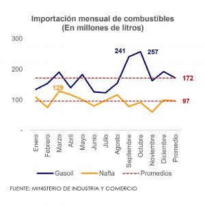 El mayor importador de gasoil fue el emblema Shell, con el 20% de lo importado, equivalente 412 millones de litros, mientras que el mayor importador de nafta fue Petropar, con 21,4%, igual a 248 millones de litros.