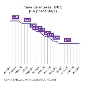 El Consejo de Gobierno del Banco Central Europeo (BCE) decidió mantener sin cambios las tasas de interés, pese a la reciente desaceleración de la inflación en la Zona Euro. La tasa de facilidad de depósito se mantiene en 2,00%, mientras que las tasas de refinanciación principal y de facilidad marginal de crédito continúan en 2,15% y 2,40%, respectivamente.