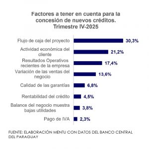 El 47,16% de los encuestados consideró que la concesión de créditos aumentará en los próximos 3 meses, el 51,14% que no cambiará y el 1,71% mencionó que disminuirá. Asimismo, el 30,3% de los encuestados destacó que el criterio más importante para la concesión de nuevos préstamos es el flujo de caja, el 21,2% la actividad económica del cliente y el 17,4% los resultados operativos. En cuanto a motivos que obstaculizan la concesión se destacaron el historial y la falta de información sobre los clientes.