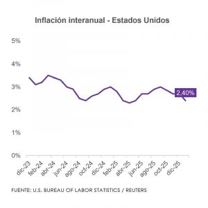 La inflación en Estados Unidos aumentó 0,2% en enero, por debajo del 0,3% previsto por el mercado, según la Oficina de Estadísticas Laborales. En términos interanuales, el Índice de Precios al Consumidor se desaceleró a 2,4%, frente al 2,7% registrado en diciembre.