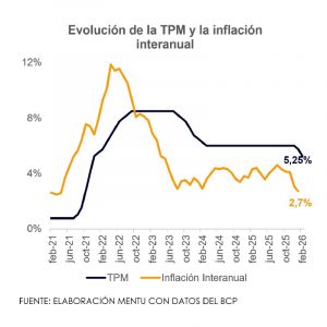 El Comité de Política Monetaria (CPM) resolvió en su reunión de febrero reducir en 25 puntos básicos (pb) la Tasa de Política Monetaria (TPM) hasta 5,25% anual, el segundo ajuste en lo que va del 2026.