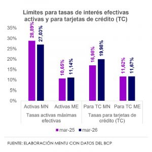 En cuanto a las tarjetas de crédito, la tasa límite en guaraníes será de 19,98%, siendo 1,1 p.p. inferior a la del mes anterior, aunque supera en 3 p.p. a la de marzo del año pasado. Para las tarjetas en moneda extranjera, el limite será de 11,67%, con una reducción mensual de 0,2 p.p. aunque con un aumento interanual de 0,1 p.p.