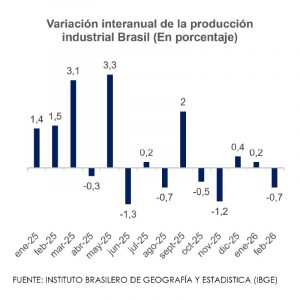 La producción industrial brasileña creció 0,9% en febrero con respecto a enero, marcando el segundo avance consecutivo. El resultado refleja una recuperación reciente, impulsada por el desempeño positivo de la mayoría de los sectores.