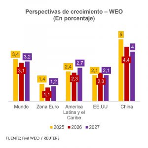 La proyección de inflación también fue revisada al alza: 4,4% en 2026, con riesgo de superar el 6% si el petróleo supera los 110 dólares por barril en 2026y 2027, según el Economista Jefe del FMI.
