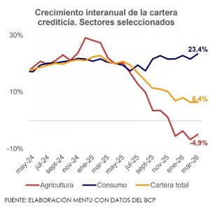 Cabe mencionar que la cartera de agricultura continuó su tendencia bajista y cayó 4,9% interanualmente, compensando parcialmente el dinamismo.