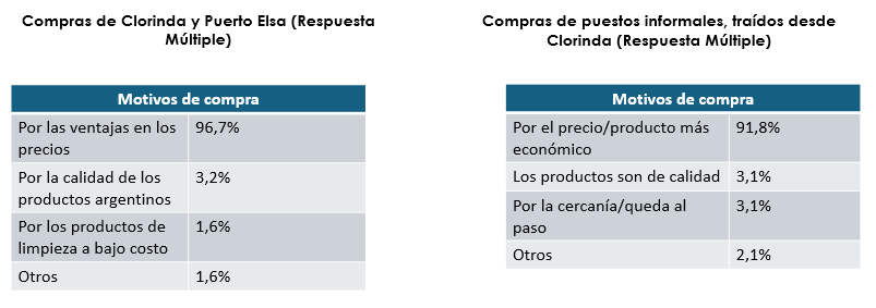 El 96,7% respondió en dicho sentido, mientras que el 3,2% apuntó que la calidad de los productos argentinos era el motivo por el que preferían el contrabando.